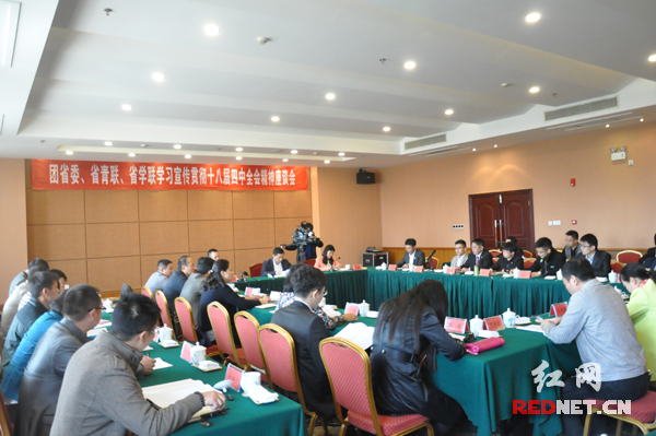 團省委、省青聯(lián)、省學聯(lián)在長沙共同召開“學習宣傳貫徹黨的十八屆四中全會精神座談會”。